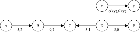 Voici une chaîne augmentante de A à E faisant partie d'un réseau de transport. Dans cette chaîne, on peut augmenter le flot de: