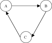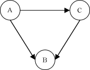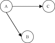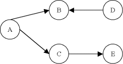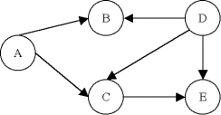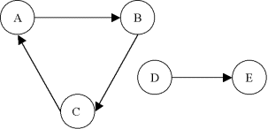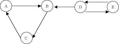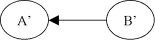 Ce graphe G n'est pas fortement connexe, car on ne peut pas trouver de chemin de A à D par exemple. Par contre, on identifie deux composantes fortement connexes A' = {A,B,C} et B' = {D,E}. Le graphe réduit du graphe G' est: