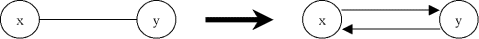 Un arc non orienté peut toujours être transformé en une situation où l'on n'a que des arcs orientés. C'est pourquoi, dans la suite du cours, on utilisera le plus souvent des graphes orientés, c'est-à-dire des graphes dont les arcs sont tous orientés.
