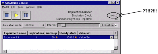 When the problem of parts distribution of a local company was presented to us, it occurred that we would need to deal with the manipulation of dates. However, most of the simulators, and especially VSE, represents the time as a real number, called the simulation clock (see Figure 4). Usually, it represents a number of years, months, days, hours... from a given date. To know which date corresponds to the simulation clock we need to perform a quite complicated conversion. For this reason, it seemed important to us, especially for a visual simulation, that we dispose of an automatic mechanism that gives us the date corresponding to the simulation clock. Figure 4: Simulation Clock of VSE.
