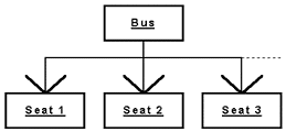 In a same way, we present the dynamic part of the model. There are customers represented by a non decomposed component, called "shallow" component, opposed to a "deep" component. The other kind of dynamic object existing in the model is the bus, decomposed in seats for the customers (see Figure 25). The bus is a deep component, it is a hierarchy of components, like the static hierarchy of the model. Figure 25: An Example of Decomposed Dynamic Component.
