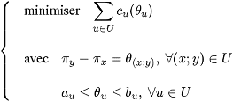 Pour mesurer la qualité d'un document, plusieurs propositions ont été faites. Les premières études ont considéré des coûts linéaires par morceau, avec un minimum en ou (e.g. [4]). Le problème peut alors être exprimé comme un programme linéaire et plusieurs algorithmes polynômiaux ont été développés (e.g. [1]). Récemment, nous avons proposé une méthode d'agrégation (cf. [3]) qui résout le problème de la tension minimum à coûts convexes linéaires par morceaux (ou problème CPLCT) sur des graphes série-parallèles (ou SP-graphes). Cette approche s'est révélée compétitive avec les meilleurs algorithmes sur cette classe de graphes. Cependant, le nombre d'objets qui doivent être modifiés (i.e. qui ne sont pas planifiés à leur durée idéale) est également très pertinent pour la synchronisation hypermédia. En effet, altérer la durée d'un objet multimédia est très coûteux en temps de calcul, et on comprend donc, dans un contexte temps réel, l'importance de minimiser cette opération (cf. [5]). Nous proposons ici une approche par agrégation pour le problème de la tension minimum à coûts binaires (ou problème BCT) dans un SP-graphe, où les fonctions de coût sont définies par: De part sa nature discrète, ce problème est NP-complet, aussi bien pour des graphes quelconques que pour des graphes série-parallèles (cf. [5]). Notre intérêt pour les SP-graphes s'explique par la structure très proche du série-parallèle des contraintes temporelles utilisées pour l'hypermedia. Malgré tout, les SP-graphes traduisent des situations trop idéales. La notion de quasi-k SP-graphes est donc introduite pour regrouper les graphes dont la propriété série-parallèle est quelque peu altérée (ajout d'arcs perturbateurs). Ces graphes traduisent alors parfaitement les besoins d'expression de synchronisation entre objets multimédia. En résumé, nous introduisons les SP-graphes et la méthode générale d'agrégation, et présentons brièvement son application au problème CPLCT pour des SP-graphes, avant de l'étendre et de la combiner avec la mise à conformité (out-of-kilter) pour résoudre le problème sur des quasi-k SP-graphes. Pour cette dernière approche, appelée reconstruction, le problème de la décomposition d'un graphe quelconque en composantes série-parallèles est abordé. Nous proposons également une application de la méthode d'agrégation au problème BCT. Enfin, nous concluons par une étude comparative, à la fois théorique et pratique, de ces méthodes avec celles existantes.