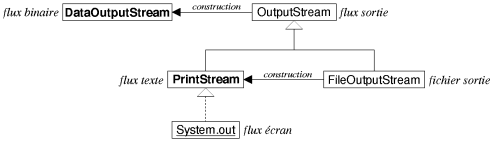 PrintStream qui représente un flux texte. Il est possible de construire un