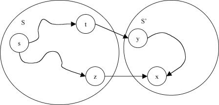 à x en empruntant uniquement les noeuds de S. Supposons que