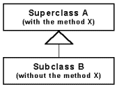 Figure 6 shows a subclass B inheriting from a superclass A, the method X is excluded from the inheritance. Figure 7 describes a solution to avoid this selective inheritance. Simply, the superclass A has not the method X and two intermediate subclasses of A are defined: the class A' which is here identical to A and the class A'' which is completed with the method X. The class B just has to inherit from the superclass A'. Figure 7: A Solution to Avoid the Selective Inheritance.