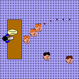 During the learning of VSE, we designed some fictitious models. One of them is the model of a building, composed of 4 floors. To access the floors, there is an elevator. The model represents the movement of people in this building, using the lift. On each floor, there is a desk, where people receive a service. There can be several persons who wait for a service. Hence, we model a waiting line, as shown by Figure 1. For the purpose of the animation, the waiting line has been modeled by a set of spots. So, logic has been worked out to manage the progression of people in this waiting line. Figure 1: Example of a Waiting Line.